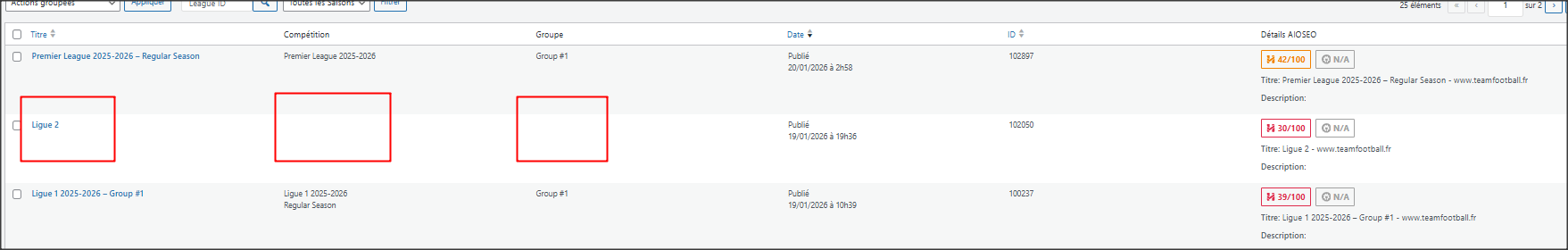 While updating Ligue 2 (France), I noticed that the standings table is not linked to the competition and is currently empty. Could you please explain how to connect it to the correct competition and how the standings table should be built?